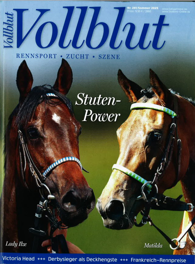 2025 - Die Sommerausgabe der ‘Vollblut’ enthält dieses Jahr einen Artikel, der die Vielseitigkeit des Vollblutes noch einmal unterstreicht: Stute Idea und ihre junge Reiterin Frieda Schulze-Zurmussen starten spontan in Hohen-Luckow im Wettkampf um die Goldene Schärpe und gewinnen mit sehr guten Noten.